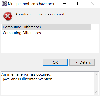 ์๋ฌ : An internal error has occurred. java.lang.NullPointerException