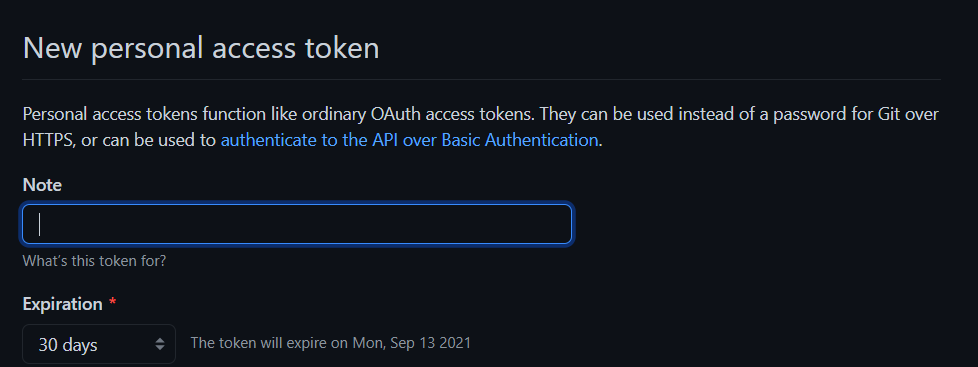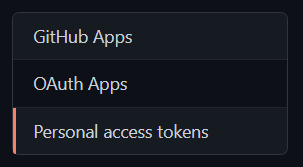 1. ์์ ์ ๊นํ๋ธ ๊ณ์ ์ ๋ก๊ทธ์ธํ ๋ค, Settings > Developer settings > Personal access tokens ๋ก ๋ค์ด๊ฐ๋ค.