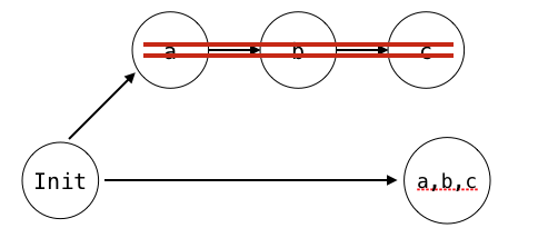 a, b, c ๋ฅผ ํฉ์ณ์ ์๋ก์ด ์ปค๋ฐ์ผ๋ก ๋ง๋ค๊ณ , ๋จธ์ง ๋์ ๋ธ๋ ์น์ ์ถ๊ฐ, 'a,b,c' ์ปค๋ฐ์ parent๋ฅผ Init ํ๋๋ง ๊ฐ์ง๋ค.