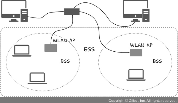 - ESS(Extended Service Set)๋ ํ๋ ์ด์์ ์ฐ๊ฒฐ๋ BSS ๊ทธ๋ฃน์ด๋ค.