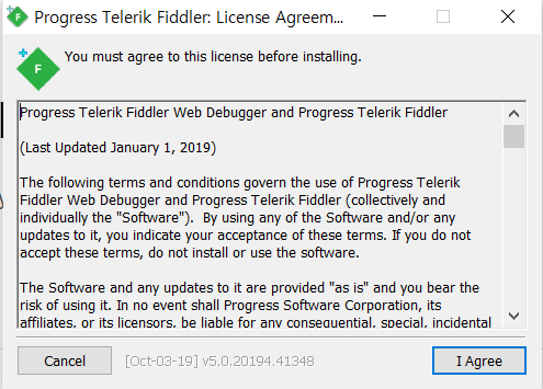 5. ์ด ํ๋ฉด์ด ๋ด๋ค๋ฉด Fiddler ํผ๋ค๋ฌ ๋ค์ด๋ก๋๊ฐ ์๋ฃ ๋ ๊ฒ์ด๋ค.